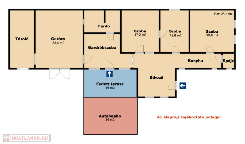 - Parkolás: garázs (33 m2) és autóbeálló (24 m2)
