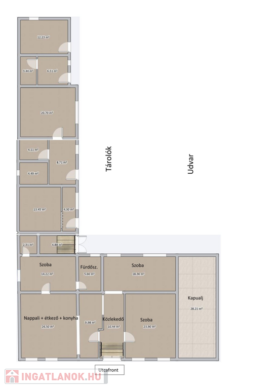 Jelenleg az ingatlan több egységből álló, összesen 180 nm alapterületű, felújítandó épület együttes.