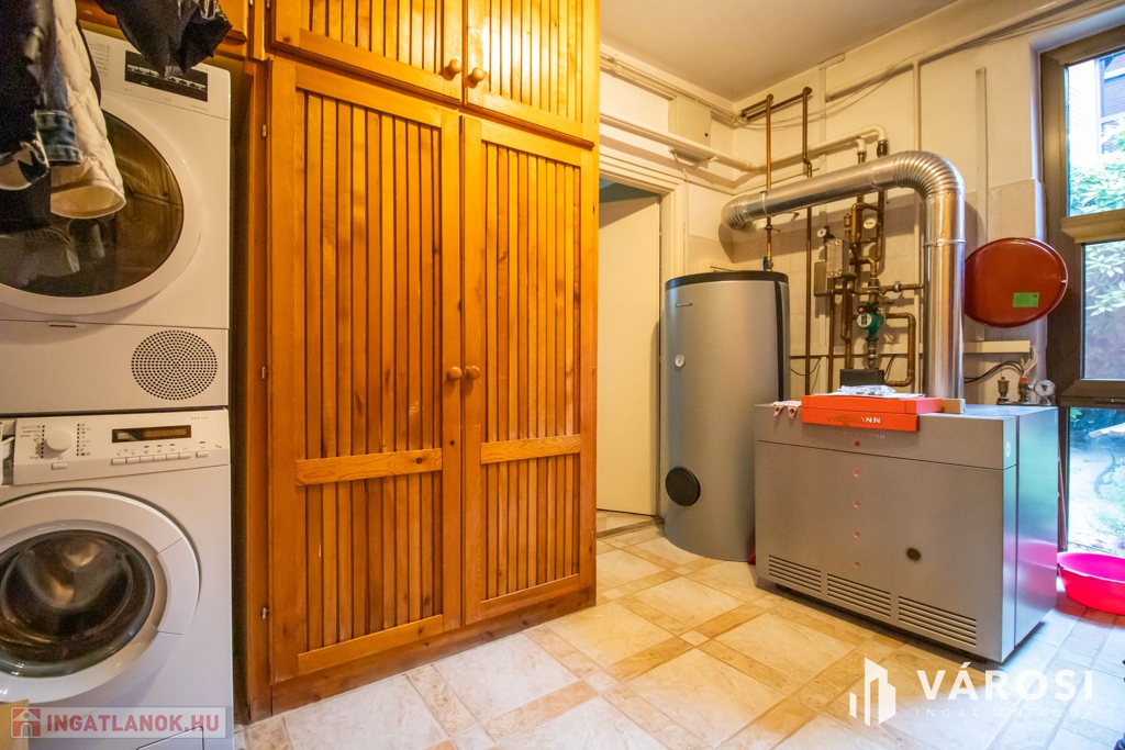 A földszinti közlekedőből és az udvarról is megközelíthető alagsorban két nagy helyiségtalálható, 20+35 négyzetméteren. Kiválóan alkalmas konditeremnek, parti helyiségnek, szaunának, billiárdteremnek, pincének stb.