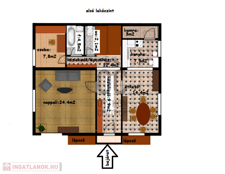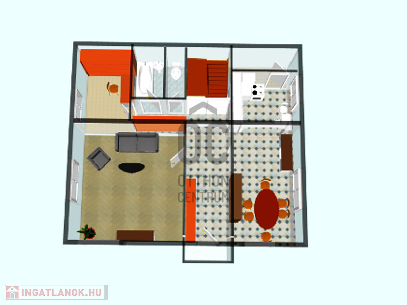 -dupla komfortos, mindkét lakószinten fürdő/wc külön helyiségben