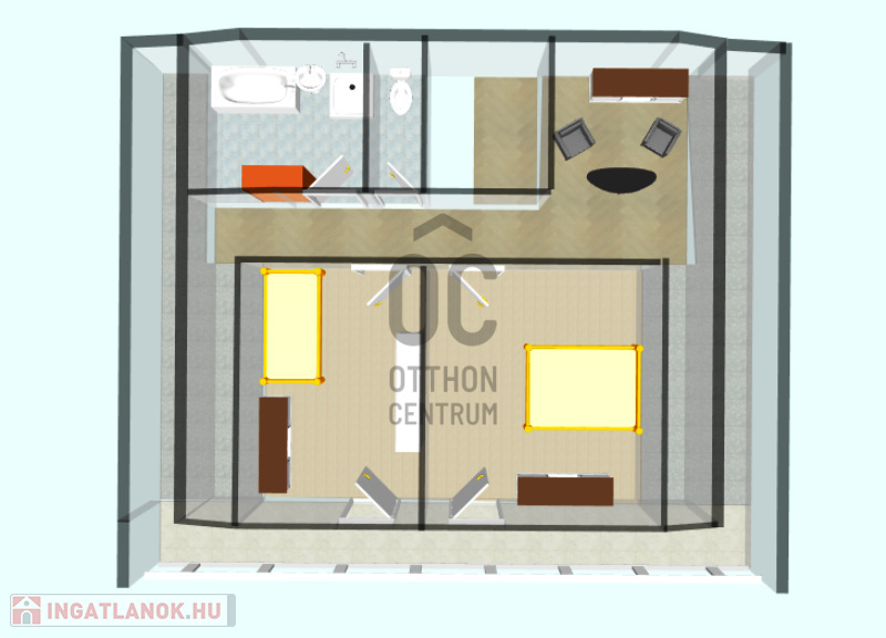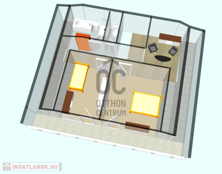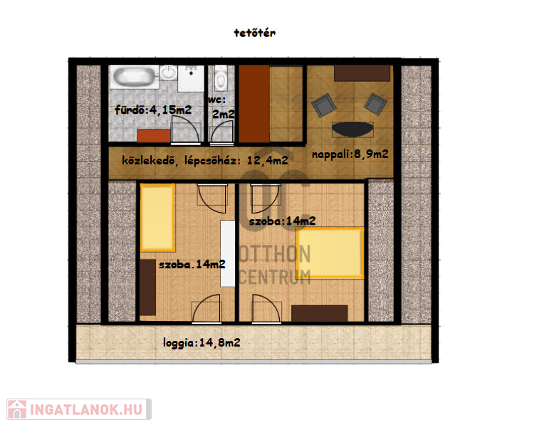 -tetőtéri szobák erkély kapcsolatosak, egy hatalmas 14,8m2-es loggiához kapcsolódik hozzájuk