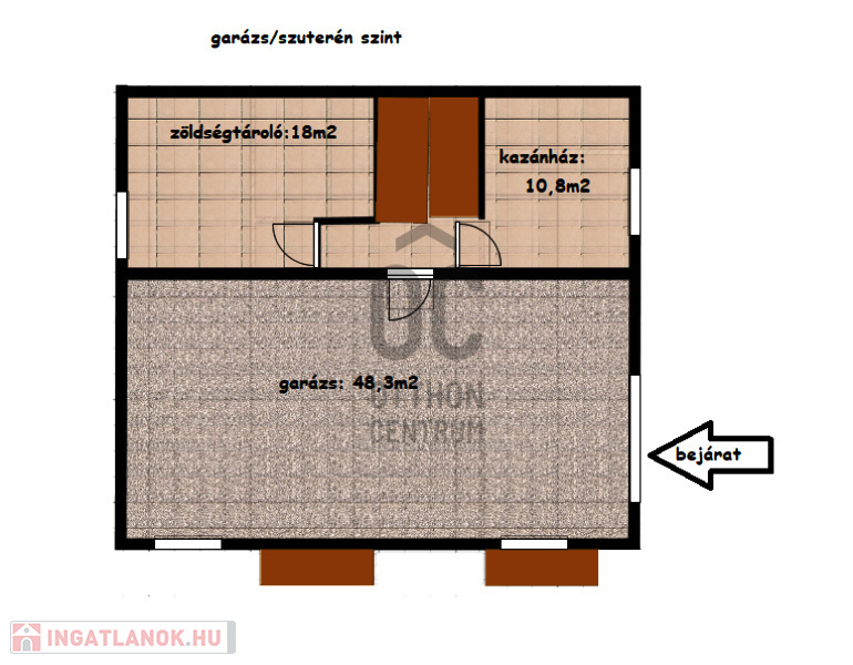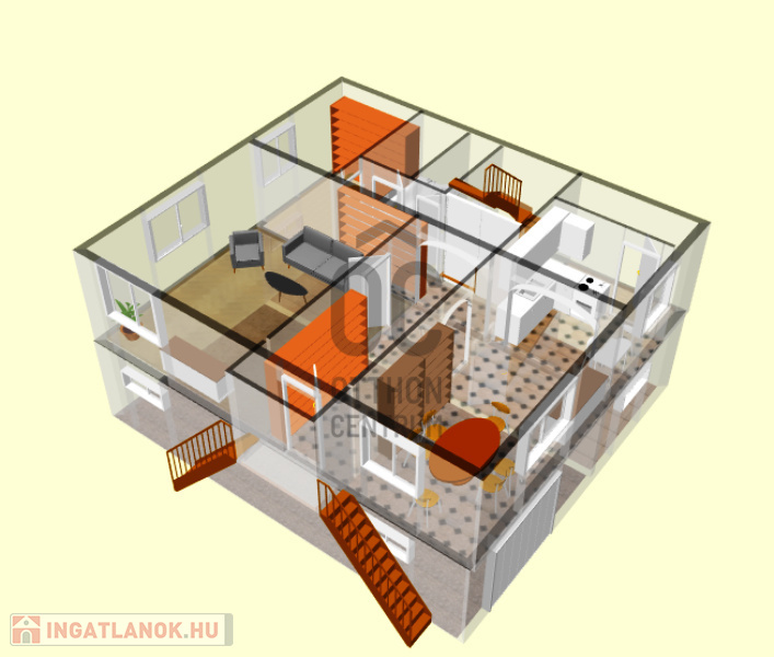 -két szintes lakótér, szintenként nettó:80m2, alatta garázs, kazánház és zöldségtároló található nettó:80m2