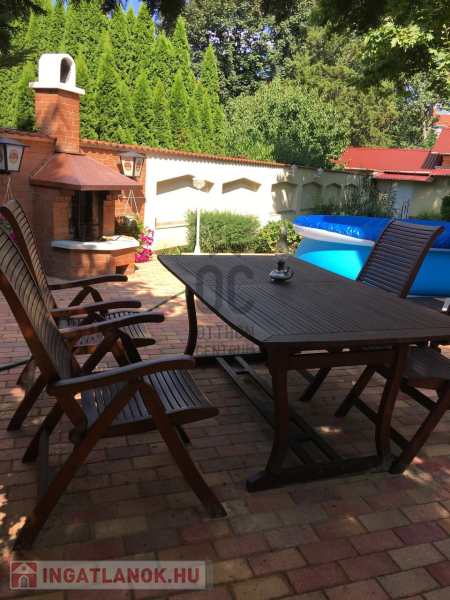A parkosított kertben automata öntöző rendszer, fúrt kút, grillező és tárolóhelyiség is van.