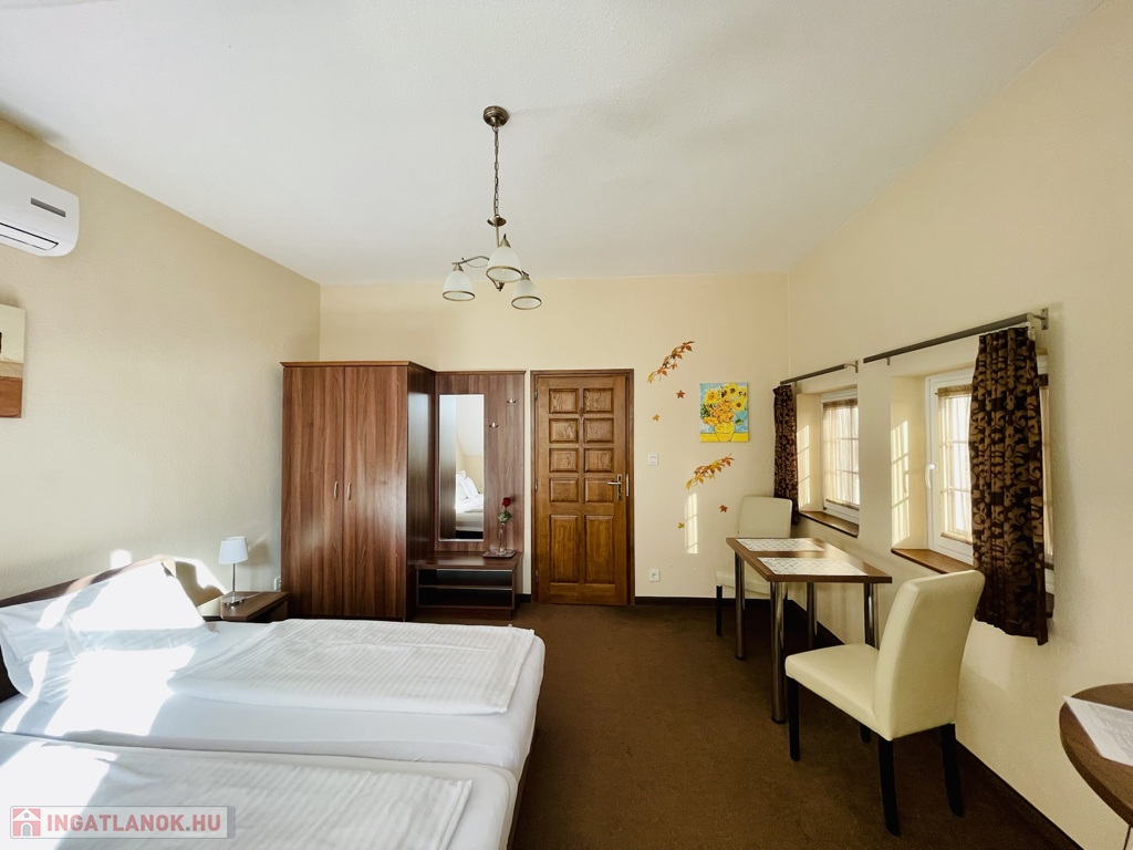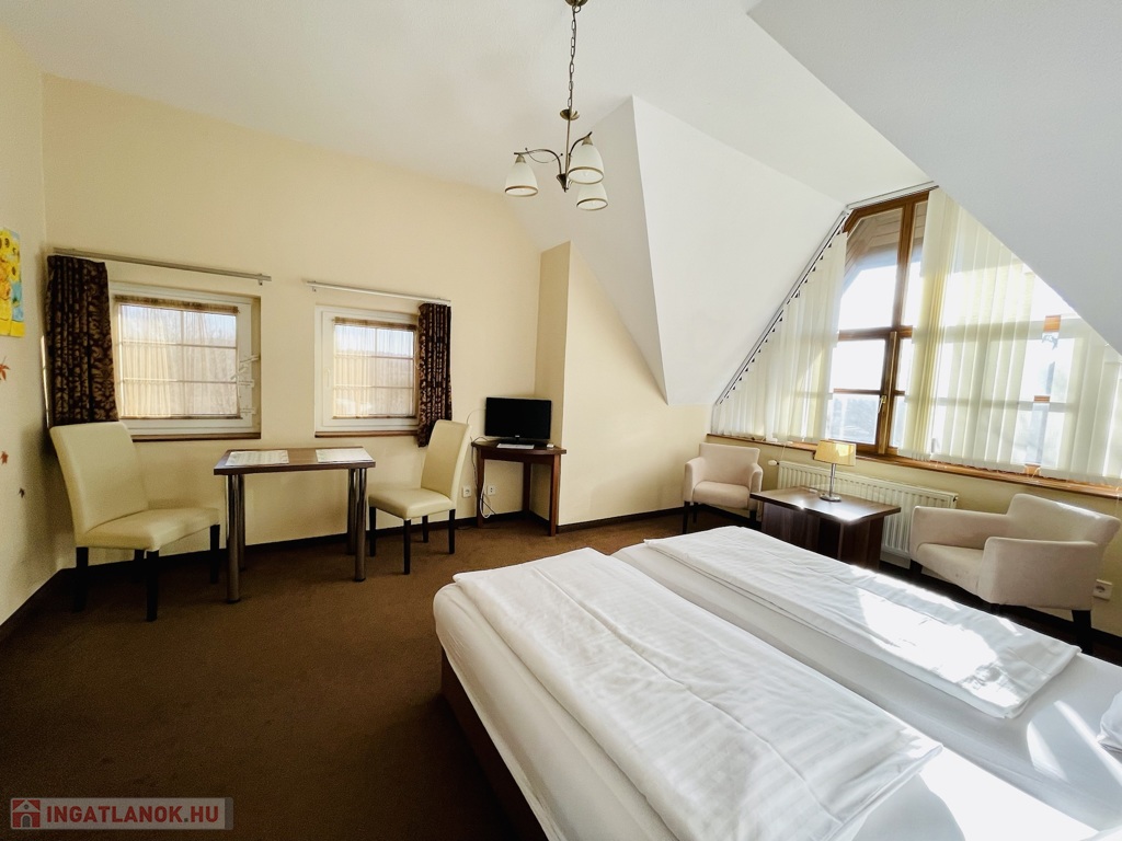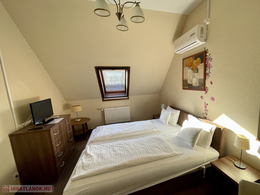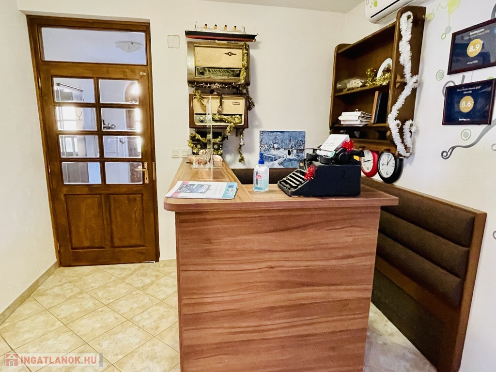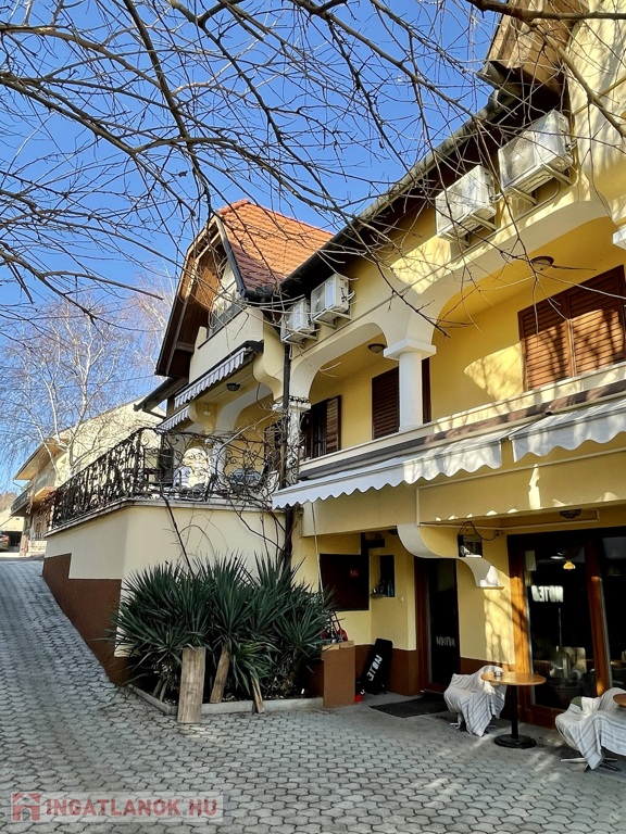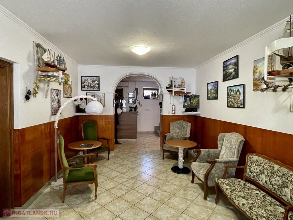 Hévízen a termálfürdőtől tizenöt perc sétára a város sík, nem dombos részén, turisták által közkedvelt utcájában kínálunk eladásra egy villát amely mini hotelként üzemel! A két szintes villa egy 1130 m2-es telken épült 1996-ban majd 2014-ben teljes körűen fel lett újítva. Az épület hasznos alapterülete 435 m2 és valamennyi közművel / villany, víz, gáz, csatorna, kábel tv és internet / ellátott. Az épület alsó szintjén (140 m2) található: recepció és hall, reggeliző terem, kamra, konyha, vendég WC, nagy közös terasz egy külön álló apartman: konyha-étkező nappalival, hálószobával, fürdő WC-vel, tágas terasszal. A hátsó részen (138m2) egy dizájnos kávézó-bár valamint vendég WC, mosókonyha, tárolók és egyéb helyiségek lettek kialakítva. Az emeleten (157 m2) hét különböző méretű apartman található amelyek mindegyike rendelkezik klímával és saját fürdőszoba WC-vel. Az udvaron hat autó számára biztosított a parkolás, több kerti grill, gyermekjátszótér és egy napozóteraszos 4x8 méteres medence gondoskodik a vendégekről. A panzió egész évben üzemel és rengeteg visszatérő törzsvendéggel rendelkezik. Hévíz világhírű termálfürdő 1 km-re, a Balaton / Keszthely / 5 km-re, a Fly Balaton reptér 15 km-re, Bécs és Budapest 200 km-re elérhető.