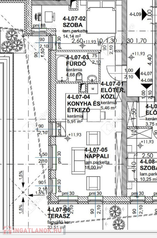A konyha minden igényt kielégítően gépesített, beleértve a hűtőszekrényt és a mosógépet is, melyek a lakás tartozékai. Minden berendezési tárgy új és garanciális, így a bérlők nyugodtan élvezhetik az új otthonukat anélkül, hogy aggódniuk kellene a karbantartás miatt. A lakás helyiségei között megtalálható egy tágas előszoba, egy amerikai konyhás nappali, egy különálló szoba, valamint egy fürdőszoba WC-vel, és természetesen a már említett terasz, amely ideális helyszín a pihenésre és a baráti összejövetelekre.