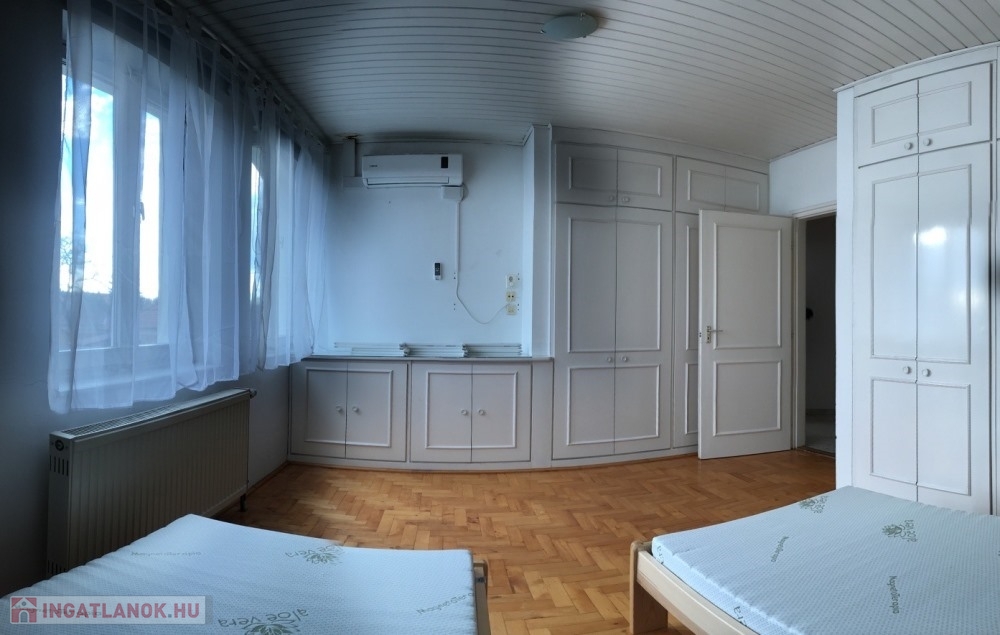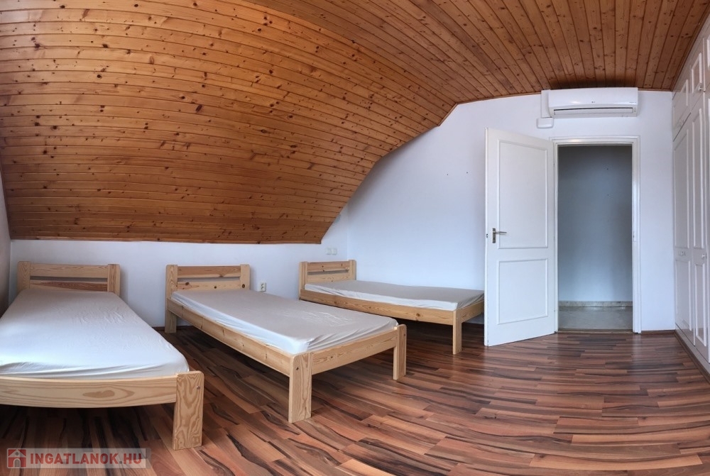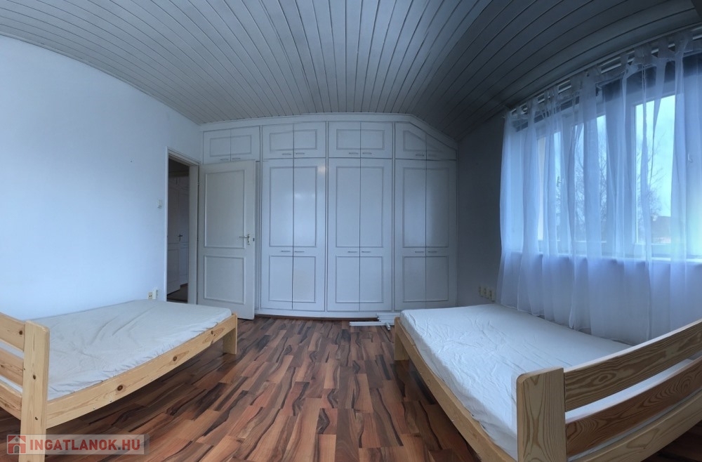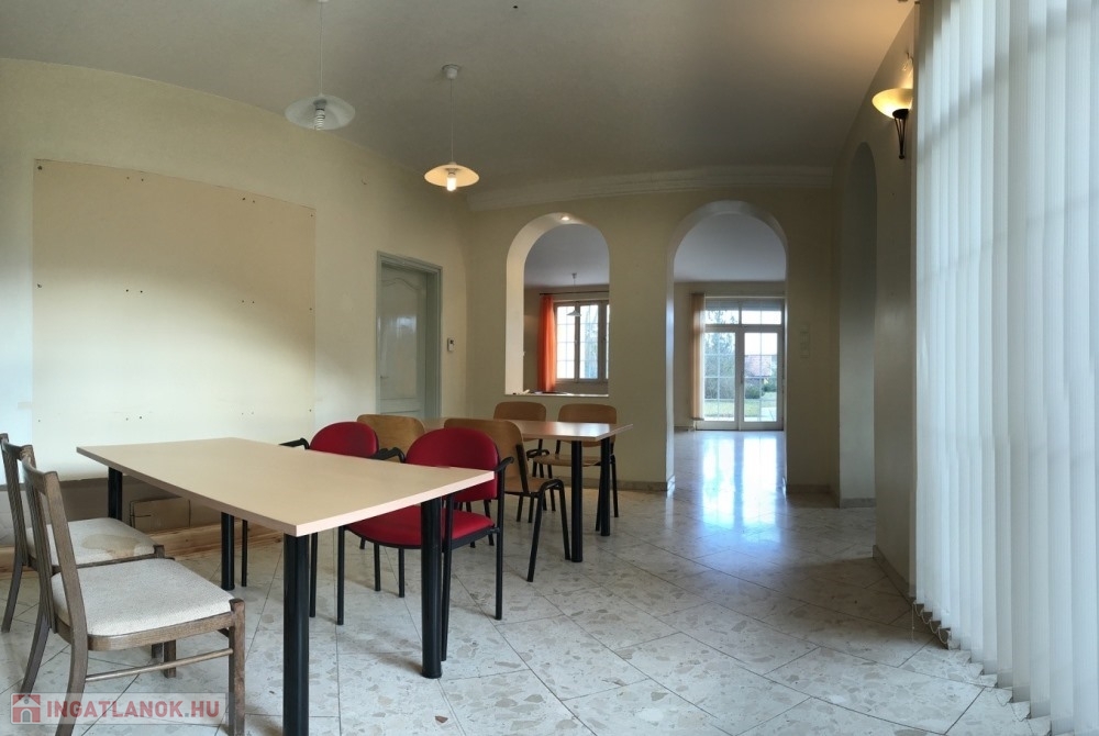 Győr-Likócs természet közeli, családi házas nyugodt övezetében, AUDI gyártól, Ipari Parktól, Belvárostól, M1-es autópályától pár perces autótávolságra, 2.100 m2-es összközműves telken lévő 2 szintes, jó állapotú épületben, összesen 9 db külön bejárattal rendelkező (10 m2; 14 m2; 17 m2, 19 m2, 20 m2 nagyságú) hálószobákból, 3 db fürdőszoba + WC-ből, méretes nappaliból/társalgóból/közösségi térből (54 m2), különálló konyhából, méretes étkezőből (17 m2), különálló kamrából, 35 m2-es TERASZBÓL, különálló pincetárolóból álló, valamint több KLÍMÁVAL felszerelt, 336 m2 hasznos alapterületű panzió/családi ház eladó.