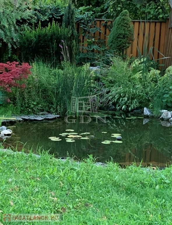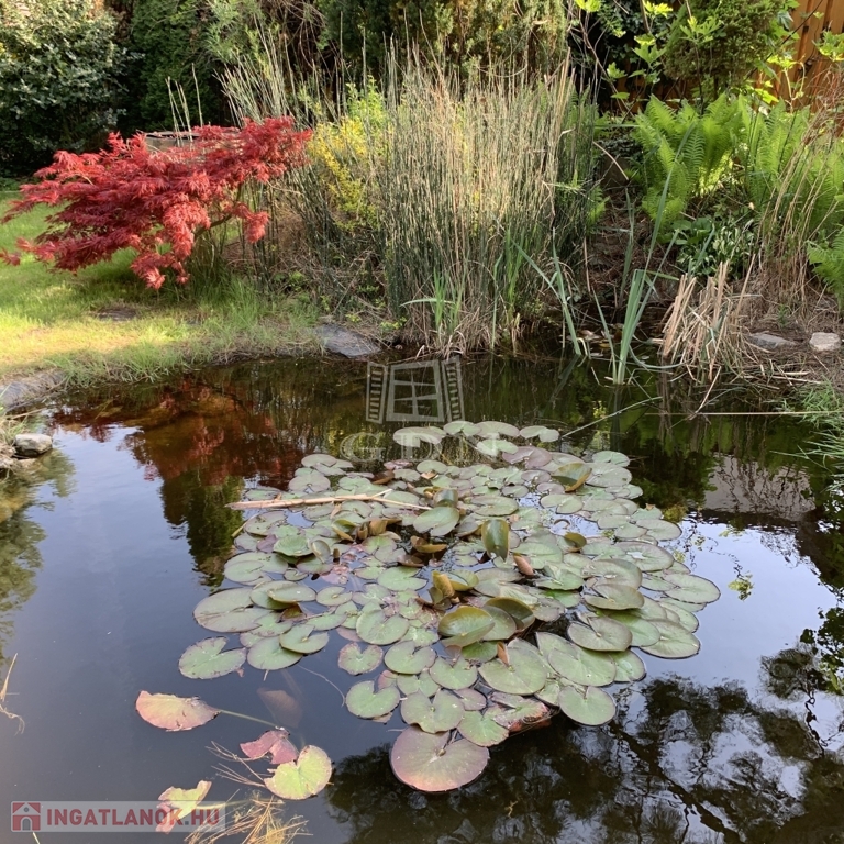 Gyönyörű látvány az udvar közepén elhelyezkedő tó, melyet rengetek növény ölel körbe.