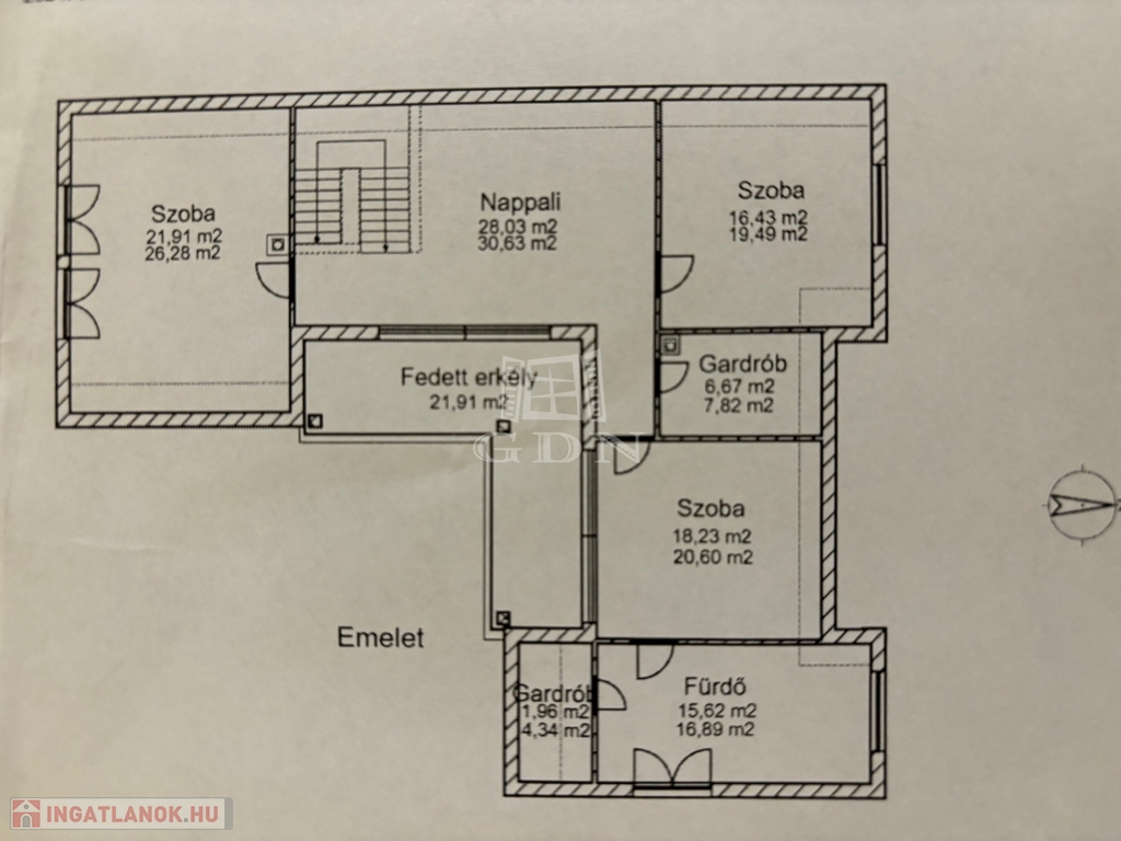 Az ingatlan bővítéssel és ráépítéssel érte el jelenlegi méretét. A lakóterület 230nm, melyben 4 szoba és 2 nappali, konyha, 2 fürdőszoba, folyosó, WC kapott helyet.