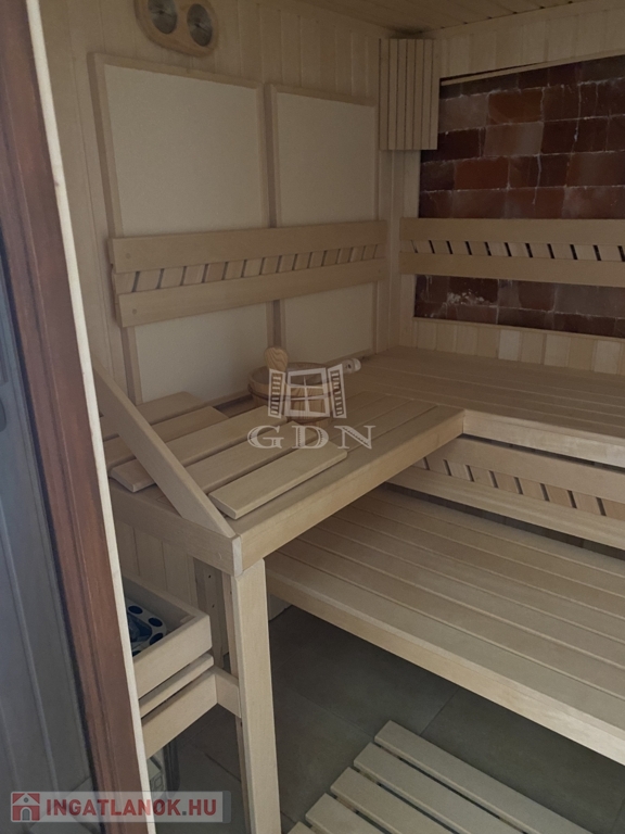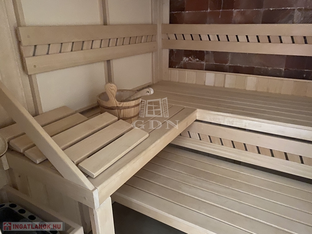 A lakásban helyet kapott egy kombinált finn-, és infraszauna, mely sótéglával és fényterápiával kiegészített. Az otthoni wellness élményt az emeleti fürdőben található Wellis gőzkabin-tusoló és Wellis fürdőkád teszi teljessé.