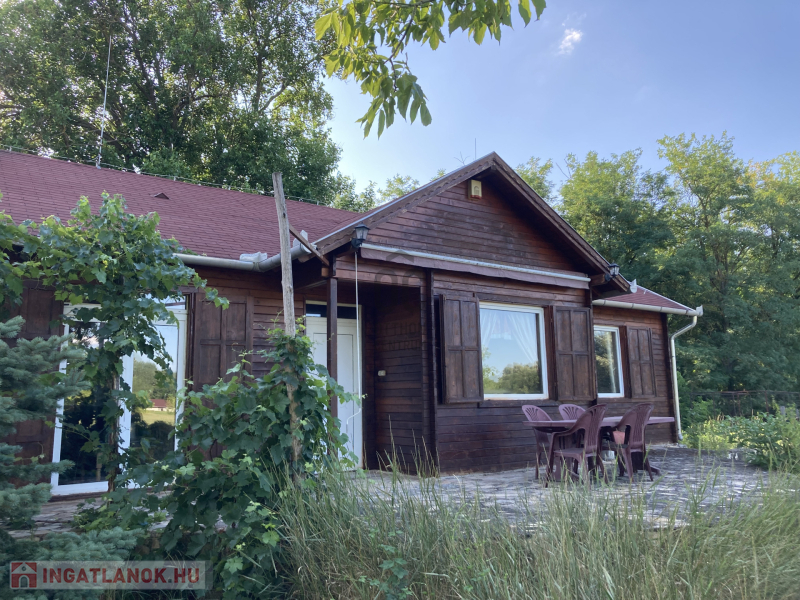 Debrecen-Nagycsere közelében, szép erdős-pusztai környezetben, 4338 nm-es telken (megnevezése "kivett tanya" ami tartalmaz lakó és gazdasági épületet is, kifüggesztéses), 2001-ben épült, 76 nm-es,nappali-étkező + konyhás + 3 hálószobás + fürdő-wc-s,elektromos cirkós és vízteres kandallós fűtéses, klímás, állandó lakhatásra alkalmas (és annak használt " négy évszakos") gerendaház 30 nm-es terasszal eladó. A ház kamera és riasztórendszerrel ellátott.A telek mellett érintőlegesen lévő kb 1,5 ha szántó is megvehető + 6 MFt-ért (nem kötelező).A tanya 3,5 km-es földúton (homok) bármilyen csapadékos időben megközelíthető. Buszmegálló a műút-földút találkozásánál van, ami a Debrecen táblához 6 km belül található, bolt stb legközelebb Nagycserén van.A ház: 15x15-ös gerendaváz, a falazatban és a tetőn 15-ös Rockwool szigetelőanyag,párazáró fólia,hőtükör, ,lambéria,gipszkarton,5x15-ös külső geredafal, kifújva tűzgátló Tetol Fb-vel,rovar és gombaölővel kezelve.
