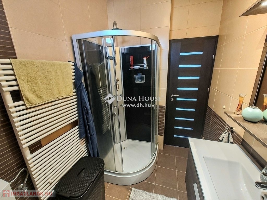 Ez a modern, 2013-ban elkészült ingatlan 160 m² lakótérrel, 40 m² fedett terasszal és 744 m² parkosított telekkel kínálja a kényelmes otthon lehetőségét. A ház építésekor korszerű anyagokat és technológiákat használtak, beleértve a modern műanyag nyílászárókat motoros alumínium redőnyökkel és szúnyoghálókkal, valamint a radiátoros és padlófűtés kombinációját, melyet kondenzációs kazán szolgál ki. Az elektromos hálózat szintén új és korszerű kialakítást kapott, az udvar pedig elektromos kapuval felszerelt.
