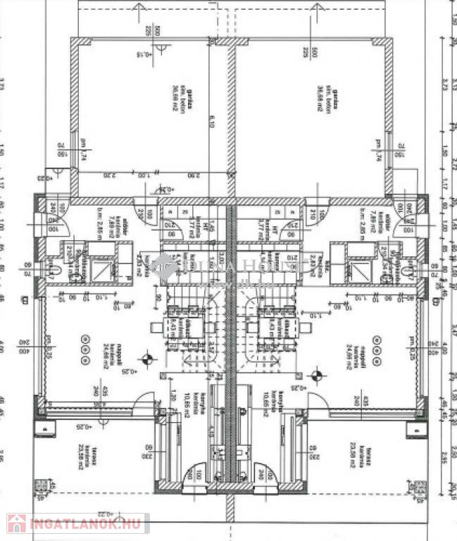 Össz terület: 153,655 m2 (1/2-1/2 terasz és erkély) + 36,68 m2 garázs = 190,335 m2.