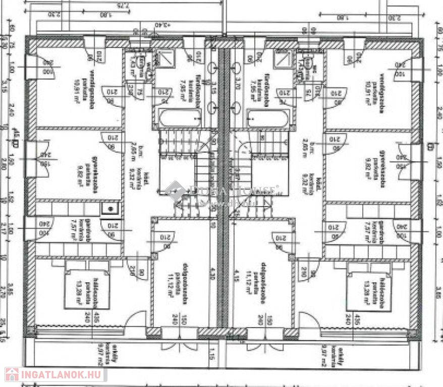 Emelet: 4 szoba, gardrób, fürdő, wc, közlekedő, erkély ( lakótér - 71,17 m2, erkély 9,97 m2).