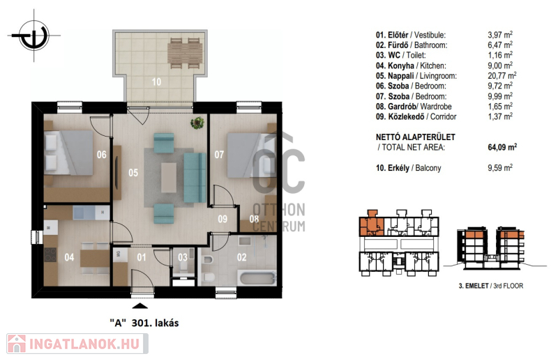 "A" III.emelet 301. lakás: 78.725.714.- + ÁFA