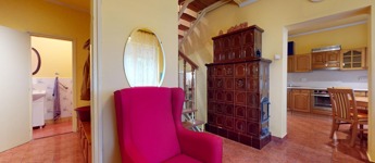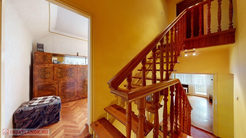 Innen egy fél emelettel feljebb lett megépítve egy hatalmas nappali, ahonnan az utcafrontra néző, nagy erkélyre lépünk ki. A ház hűtéséről egy 6 KW-os klíma berendezés gondoskodik. Meseszép a kilátás a Tokaji-hegyre.