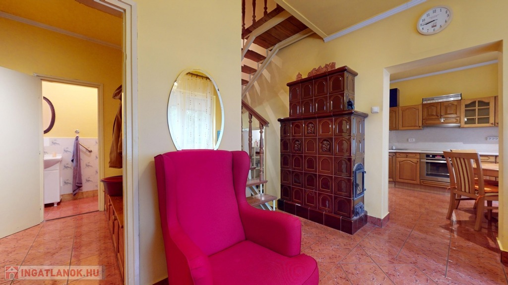 Fűtése házközponti fűtés, gázkazánnal. Fontos kiemelni, hogy a házban kettő darab, nagyon jó állapotú cserépkályha lett megépítve, kellemes, hangulatos. Ez egy plusz fűtési rendszer.
