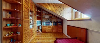 Feljebb haladva lett kialakítva egy újabb fürdőszoba és két hálószoba, plusz egy gardrób szoba is helyet kapott.