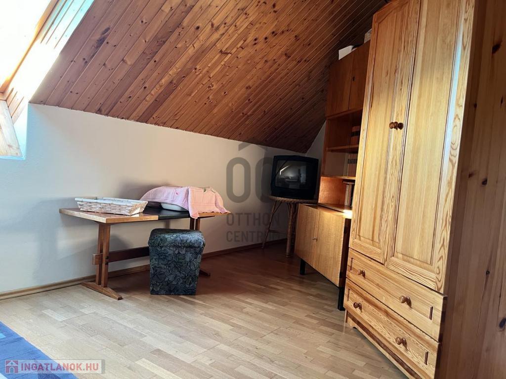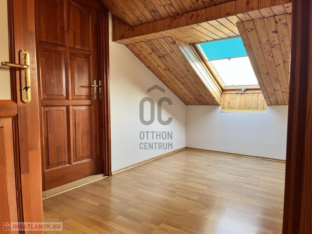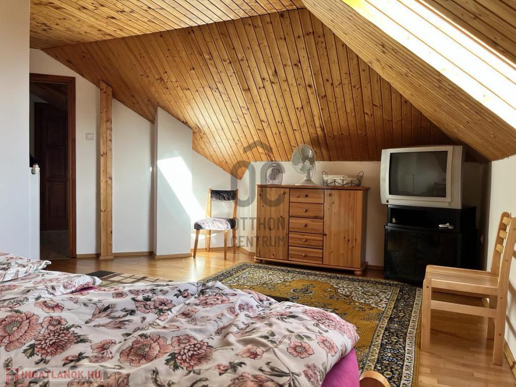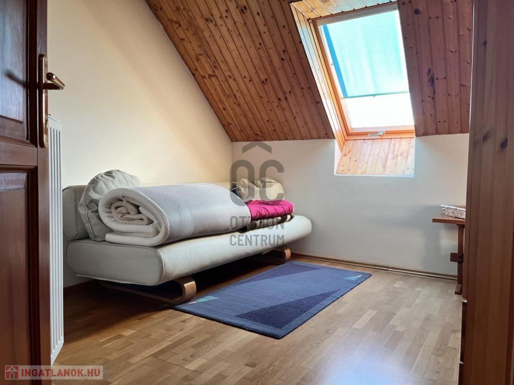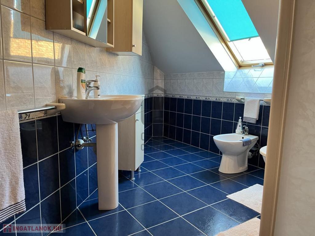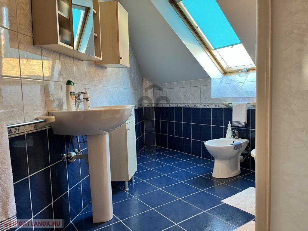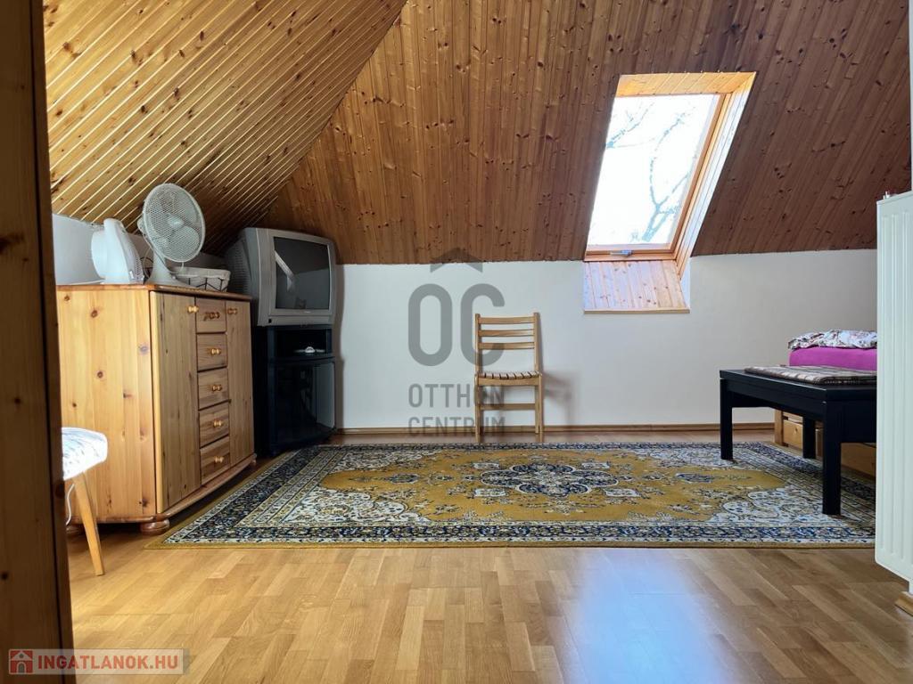 -A tetőtérben 2 szoba, fürdőszoba (zuhanyzóval, káddal, WC-vel és bidével), egy nagyméretű helyiség ami pillanatnyilag tárolóként funkcionál.