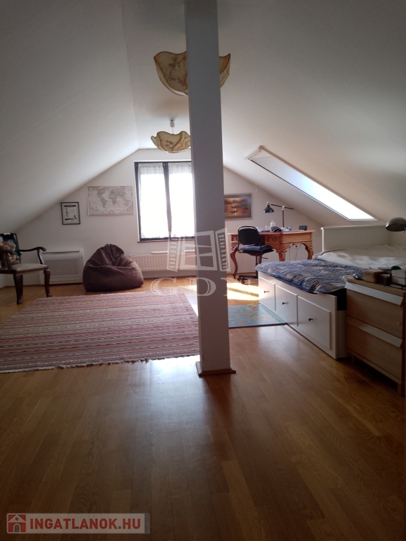A beépített tetőtérben 2 szoba, fürdőszoba, tároló (melyből terjedelmes gardrób lehetne bepolcozást követően), és egy tágas közlekedő (melyből akár egy második nappali is kialakítható) van.