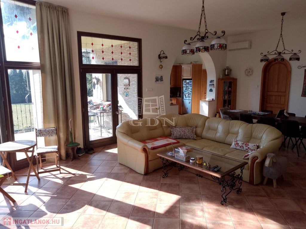 A földszinten 3 szoba, és egy nagy méretű amerikai konyhás nappali kapott helyet. A nappali egy 40 nm nagyságú teraszra, valamint a belső udvarra (kertre) néz. Világos, benapozott, kellemes hangulatú része az ingatlannak. Tökéletes tervezés!