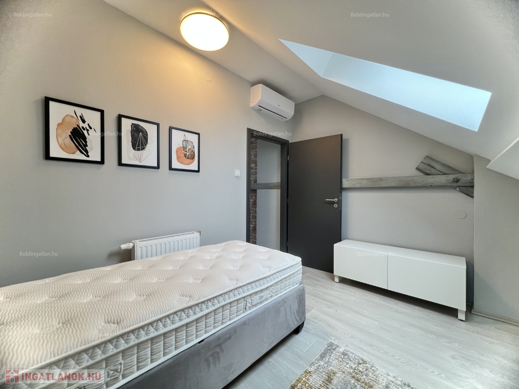 Kaposváron a belvárosban, a kórház közelében, a Bajcsy-Zsilinszky utcában, magas minőségben felújított társasház 2. emeletén 80 m2-es, - azonnal költözhető - berendezett exkluzív lakás kiadó. A lakás alsó szintjén tágas hangulatos nappali - konyha - beépített konyhabútorral Gorenje gépekkel - étkező, közlekedő, 1 szoba, fürdőszoba, wc, a felső szinten további 2 szoba helyiségek kerültek kialakításra. A lakás rezsije nagyon kedvező, a fűtése és a meleg víz ellátása gázközponti kazánnal megoldott, légkondicionálók kerültek felszerelésre, illetve az elektromos ellátást napelem biztosítja. A lakás a belvárosban található, a közelben megtalálható a kórház, bevásárlási lehetőségek, közintézmények, illetve a Kossuth tér is pár perc kényelmes séta távolságra van. A lakást a tulajdonosa minimum 1 évre, legfeljebb 2 felnőtt és 2 gyermek részére kívánja bérbe adni, a dohányzás és a kisállat tartása nem engedélyezett. Igény esetén a lakáshoz bérelhető még a társasház zárt udvarán 1 személygépkocsinak parkolóhely, illetve korlátozott számban garázs is. Bérleti díj: 250.000.- Ft/hó + rezsi + 2 havi kaució
