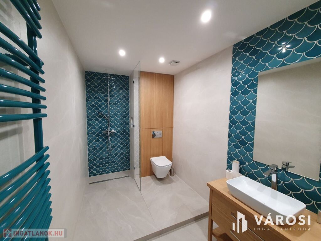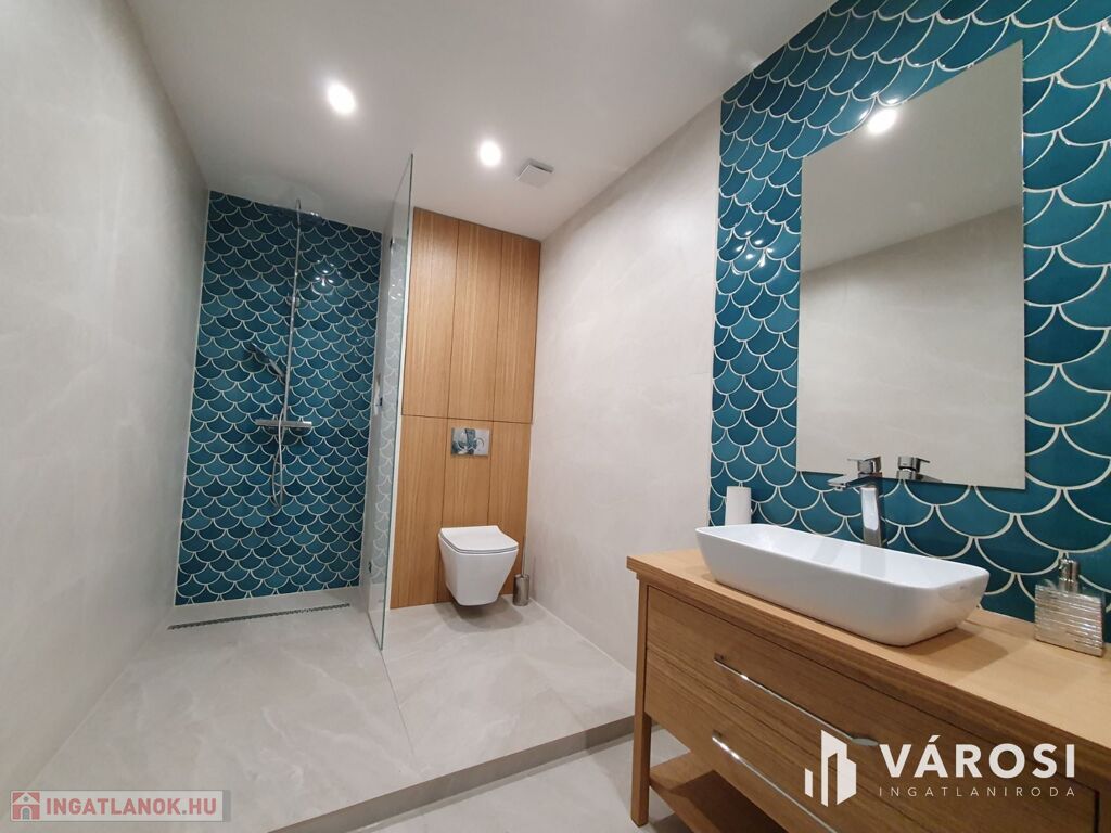 A fürdőszobában és a konyhában is minden lefolyó, vízvezeték ki lett cserélve. Új, spanyol első osztályú csempék, Ravak zuhanypanel, csaptelepek, mosdókagylók, rejtett tartályos Ravak-wc került beépítésre.