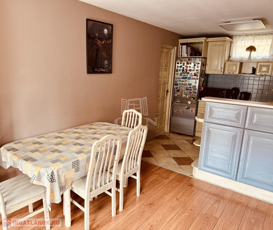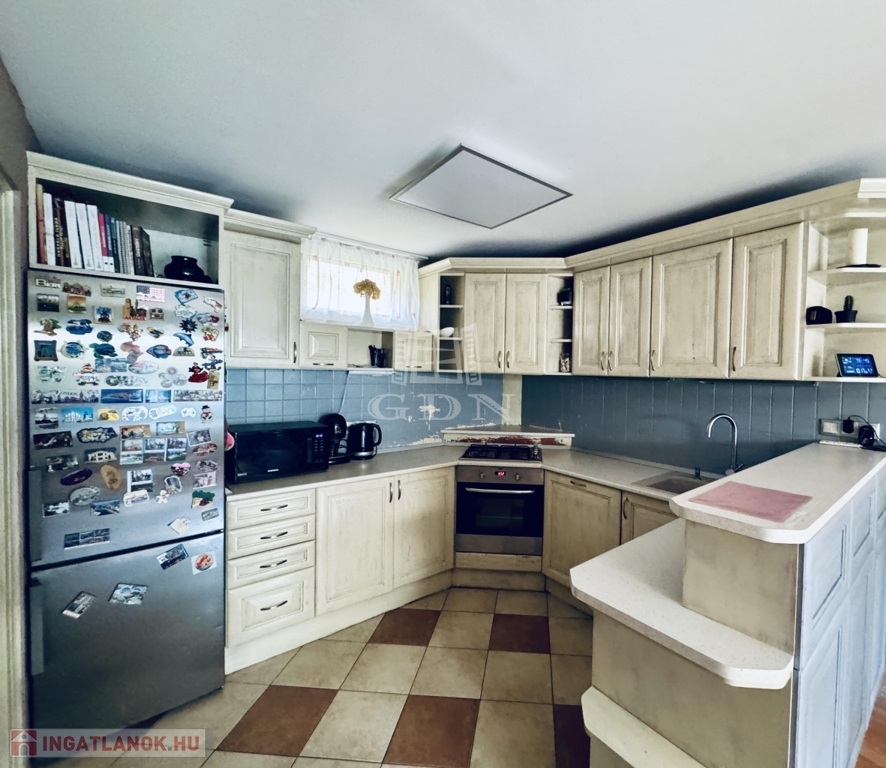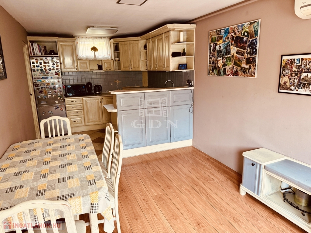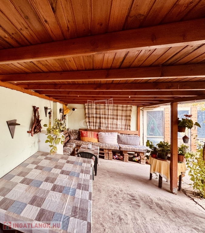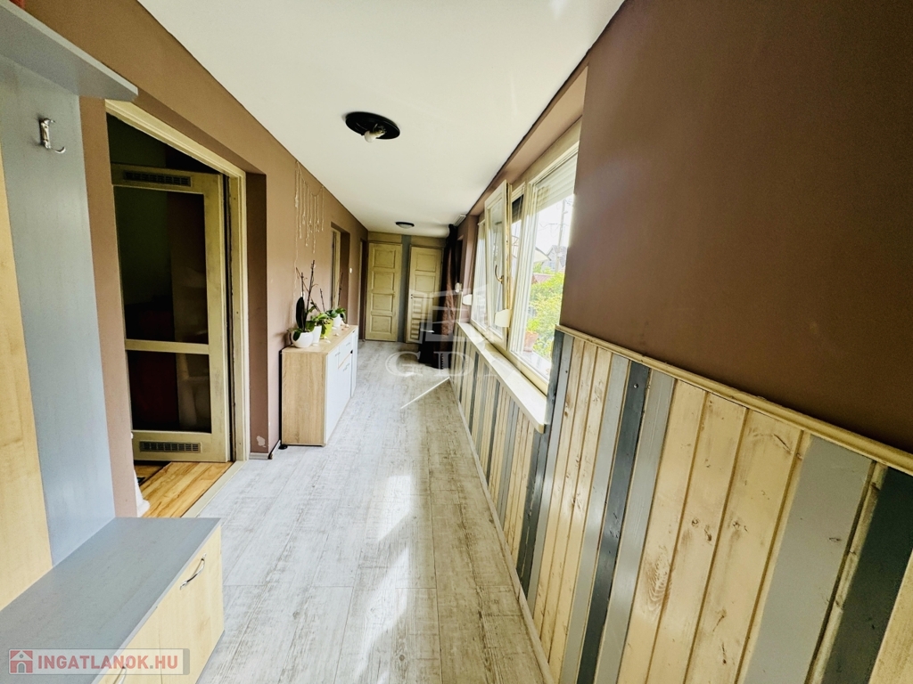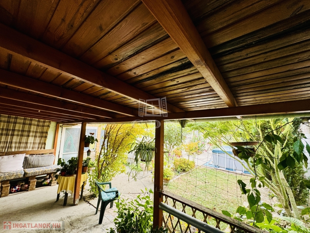 A 120 négyzetméter 4 szobára, konyhára, fürdőszobára, külön WC-re, kamrára valamint tágas előtérre oszlik. A 412 négyzetméteres telek gondozott, parkosított, igény szerint garázs is kialakítható rajta. Az udvaron található még, egy nagy méretű, fedett terasz valamint kerti tároló.