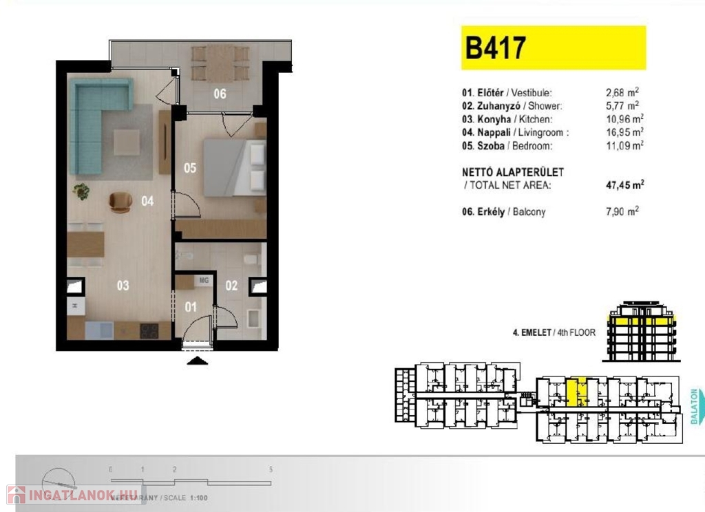 Az ötemeletes apartmanház a Balatonra merőlegesen helyezkedik el, így biztosítva a lakásokból az örök balatoni panorámát tulajdonosainak. Modern, új építésű, prémium minőségű apartmanok várják Önt, közvetlenül a vízparton. Az ingatlan előtt húzódó több mint 3 km hosszú szabad strand gondozott zöldterületekkel, parti sétányokkal és sportolási lehetőségeket kínáló kölcsönzőhelyekkel szolgálja ki az itt nyaralók igényeit.
