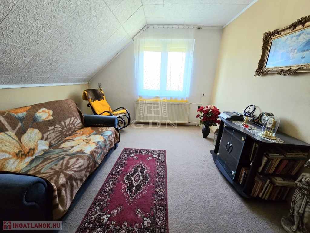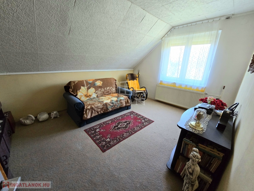Az 1986-os évben épült blokk tégla szerkezetű két szintes, szuterénnel rendelkező ingatlan első szintjén található 1 konyha, nappali, 2 szoba, fürdőszoba, wc, előszoba, valamint egy közlekedő. Tovább haladva a 2. szinten kialakításra került 2 szoba, illetve egy fürdőszoba+wc. Az ingatlan legalsó szintjén a szuterénben található a kazánház, egy műhely, valamin egy közel 30 m2-es garázs mely két autónak is kényelmes helyet biztosít. A garázs elektromos ajtóval van felszerelve, illetve a kazánházból feljuthatunk a lakás első szintjére, valamint a hátsó udvarra is kijuthatunk.