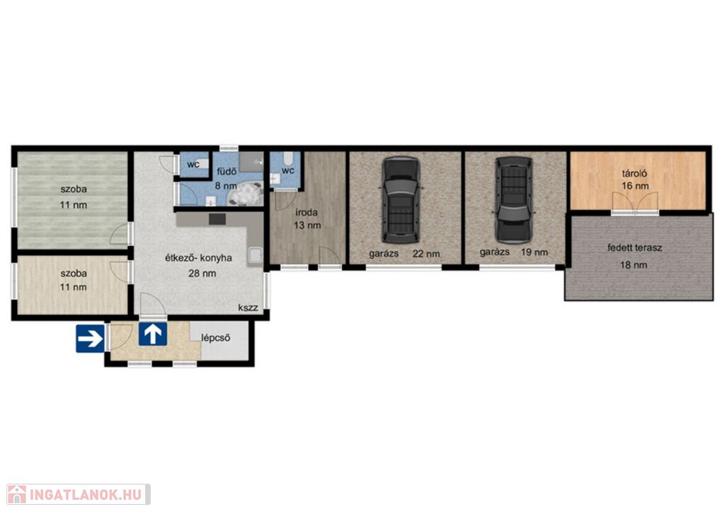 - 155 nm hasznos alapterület, belső két szintes épület.