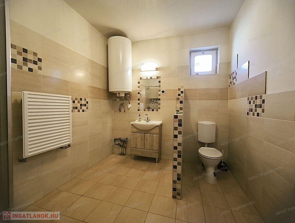Az épület fűtéséről gázkazán gondoskodik radiátoros hőleadókkal, a melegvíz ellátásáért elektromos vízmelegítő felel.