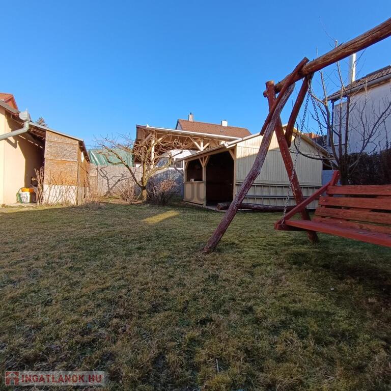 A házból kilépve jutunk ki a hátsó udvarra, ahol egy épített, fedett fából épült kerti pihenőhely kapott helyet a sütögetéshez, bográcsozáshoz. Családi, baráti összejövetelek tökéletes helyszíne a zöld parkosított 450 m2 nagyságú udvar, évelős cserjékkel, néhány gyümölcs fával.