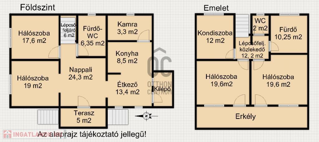 Az ingatlan jellemzői, amely É-NY tájolású: