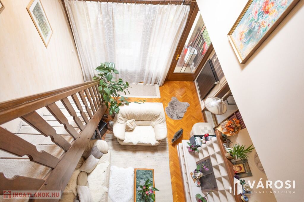 A földszinten egy dolgozószoba, külön fürdő és WC, konyha, tágas étkező és a nagy ablakoknak köszönhetően napfényes nappali is helyet kapott. Az emeleti rész galériázott, ide egy masszív, tömörfa lépcső vezet. Ezen a szinten további 3 szoba és egy fürdőszoba került kialakításra, 2 szobához saját loggia is tartozik.