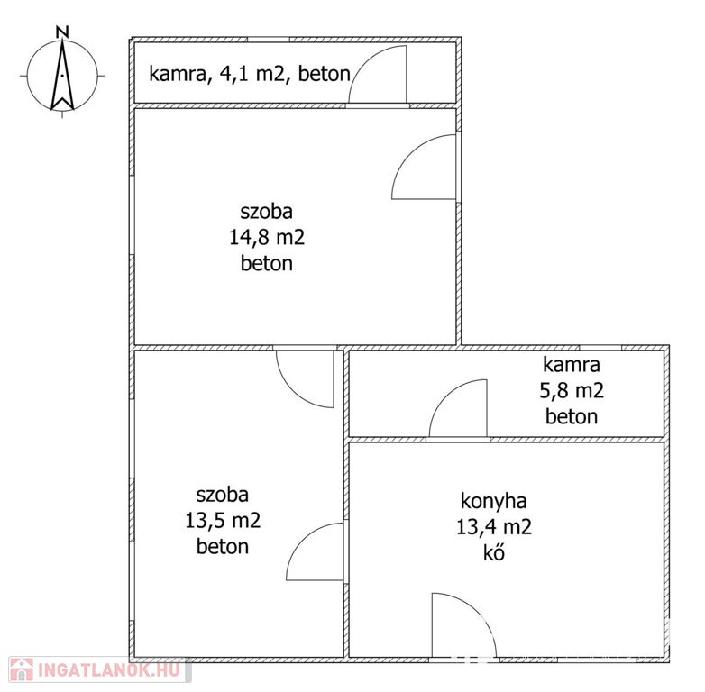 A ház jó statikai állapotú, magas kőalapra épült, vastag vályogfalakkal rendelkezik, új tetővel, műanyag ablakokkal és bejárati ajtóval, 71 m2 hasznos alapterülettel.