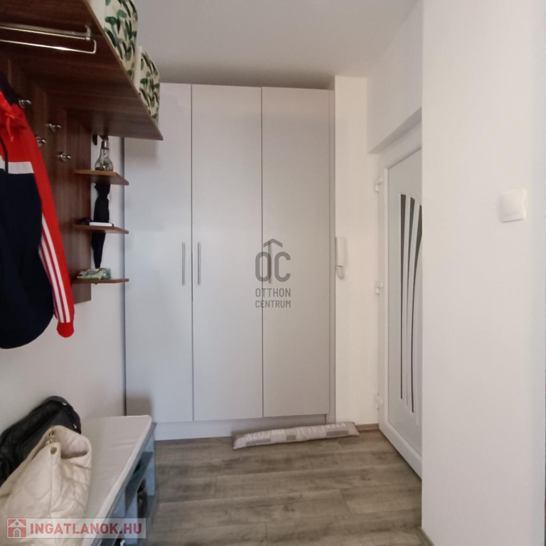 - felosztása: konyha, étkező-nappali, 1 hálószoba, amely erkélykapcsolatos, közlekedő, beépített szekrény, fürdő, külön WC, tároló