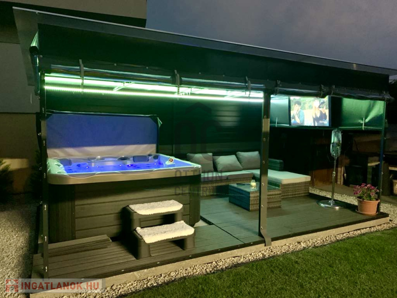 téliesített wellness terasz 5 személyes Wellis jakuzzival