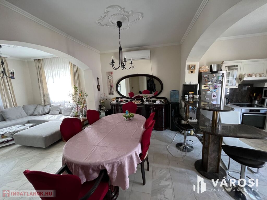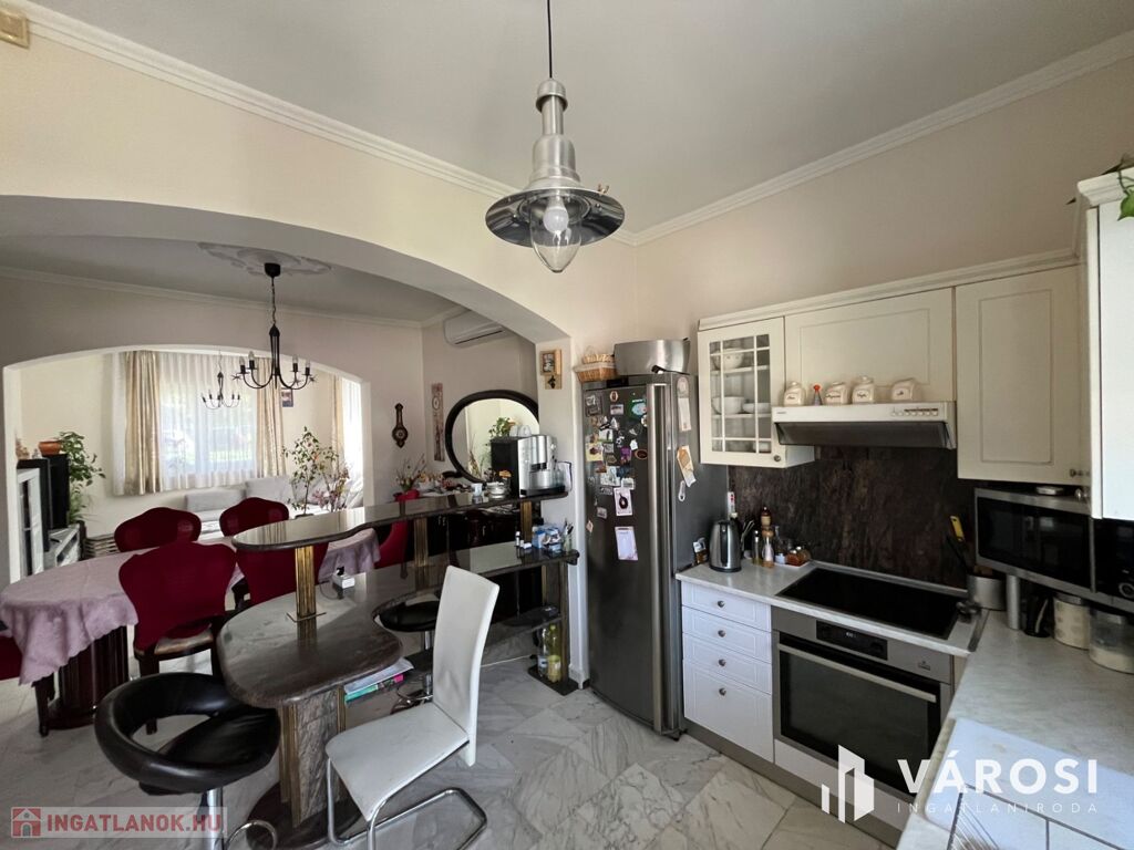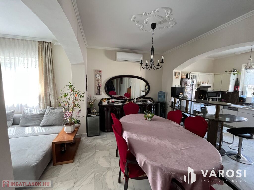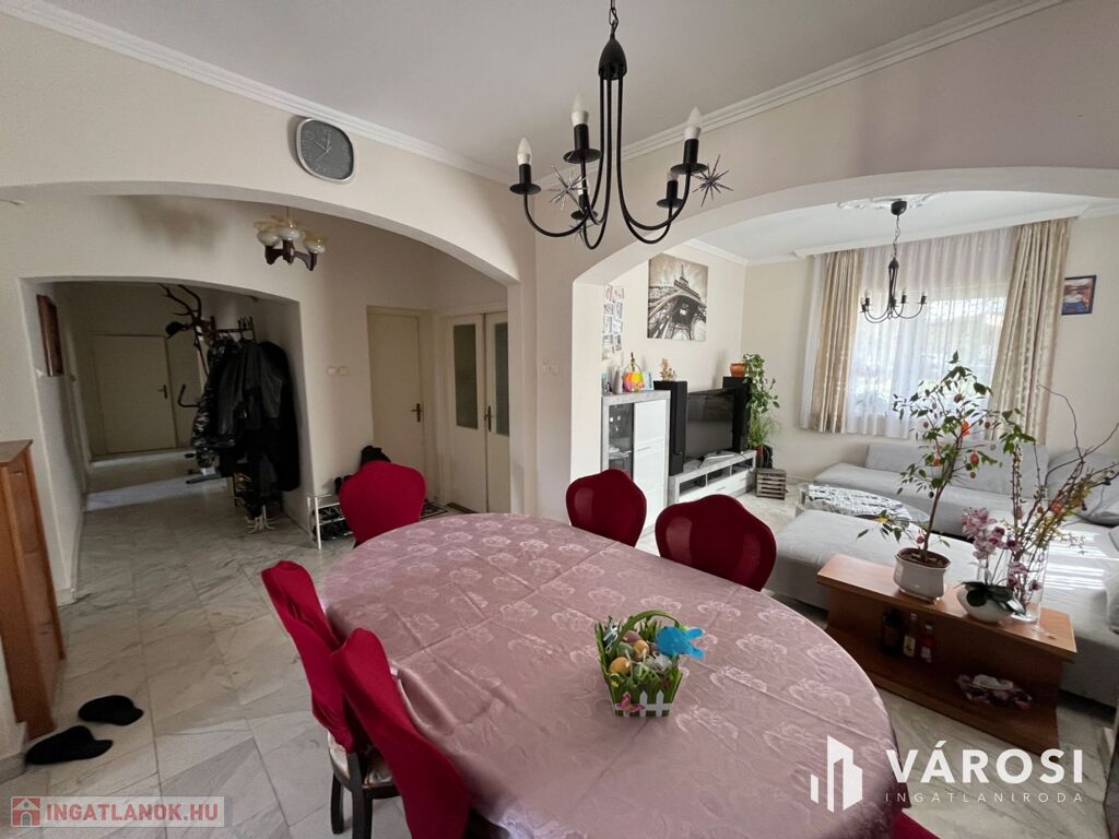 Debrecen kedvelt övezetében a Hatvan utcai kertben, 140 nm-es 3 szoba nappalis, amerikai konyhás ház, két fürdőszobával eladó! A telek 865 nm-es, ahol helyet kapott még két melléképület. Az egyik 70 nm-es amelyben dupla garázs van, nyári konyha, és egy mosdó wc. A másik épület kb 30 nm, amiben tároló, mosókonyha és kazánház van, plusz ez alatt egy pince is található. Az ingatlan rendkívül jó elhelyezkedése miatt, akár társasház építésére is kiválóan alkalmas. További részletekért kérem keressen!