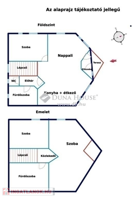 Az emelet jelenleg majdnem szerkezetkész állapotban van és sok lehetőséget rejt magában. A lépcsőn felérve egy közlekedőhöz érkezünk, amelyből két szoba (30nm,11nm) nyílik, valamint egy fürdőszoba.