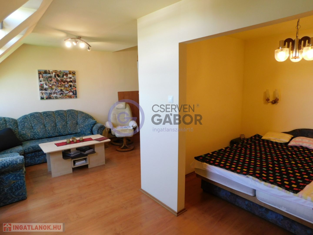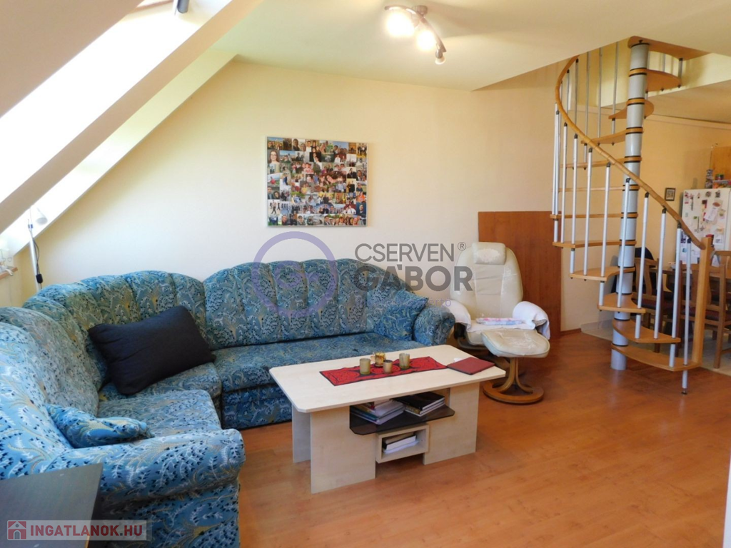Az eladásra kínált lakás a tetőtér beépítés jellegéből adódóan 90 m2-es bruttó alapterülettel, és 74 m2-es hasznos, nettó lakóterülettel rendelkezik, a két lakószintet egybevéve. A beépítés során a lakások válaszfalait könnyűszerkezetes technológiával készítették, így a lakótér elrendezése igény szerint átalakítható