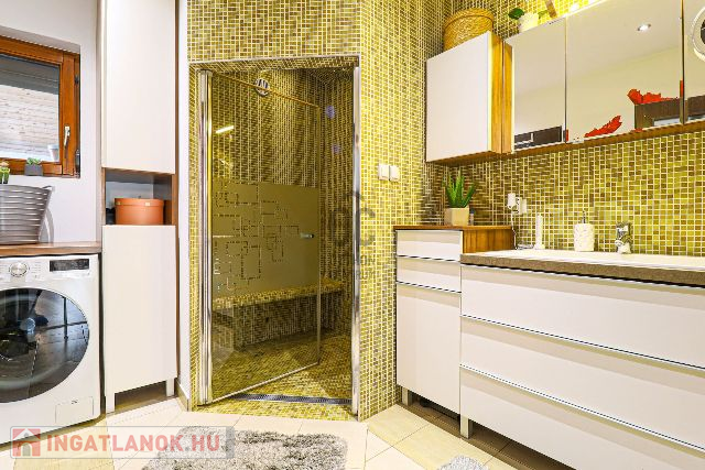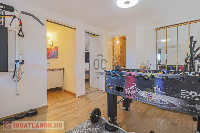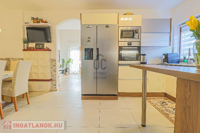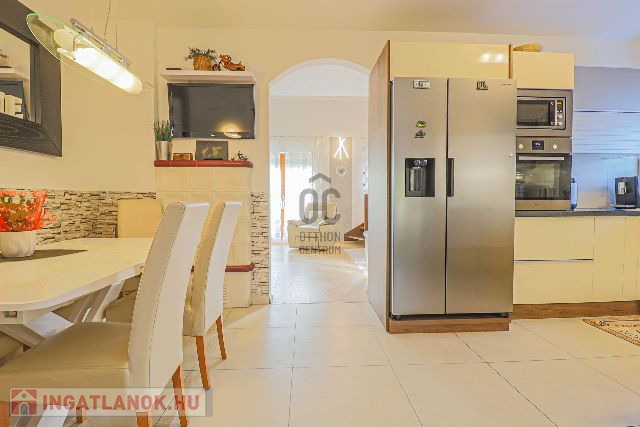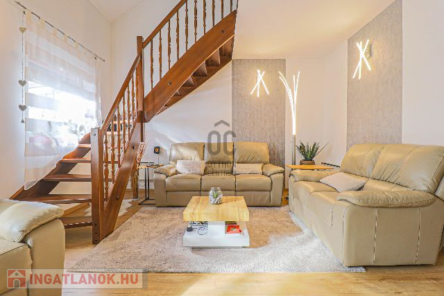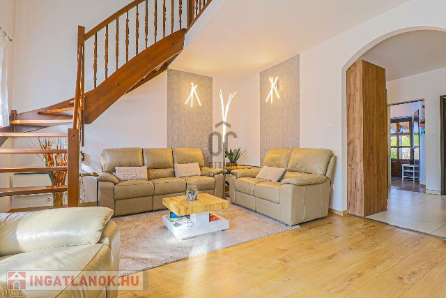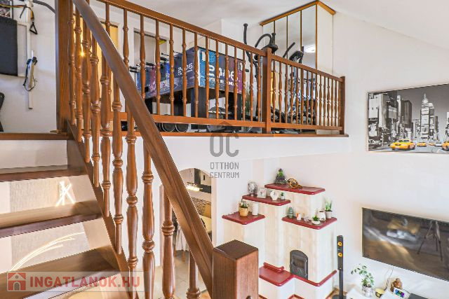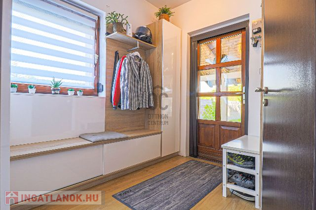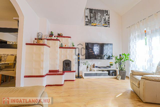 Az ingatlan 2003-ban épült, de 2017-ben teljes körű felújításon esett át – ennek köszönhetően esztétikailag és műszakilag is kifogástalan állapotban van. Az ízlésesen megtervezett, 100 m²-es lakótér tökéletes egyensúlyt teremt a meghittség és a tágasság között. A földszinten egy hívogató előszoba, egy teljesen felszerelt, minőségi konyha-étkező, egy fürdőszoba, valamint egy impozáns, galériás nappali található, ahol a meghitt cserépkályha és a modern klímaberendezés is gondoskodik a komfortérzetről.