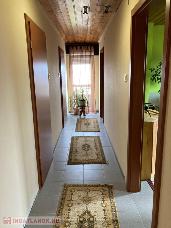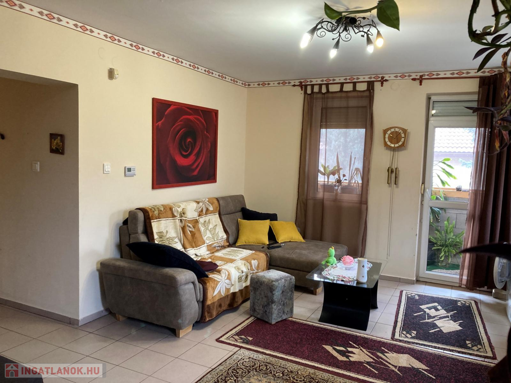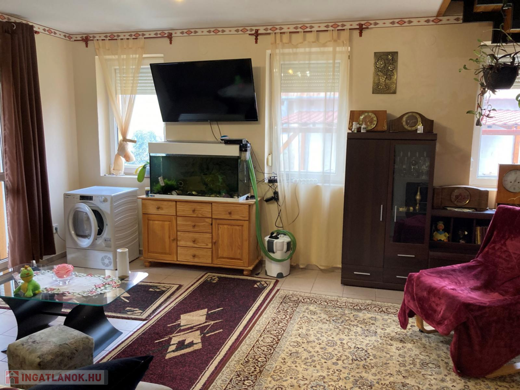 Az ingatlan 2000-ben téglából épült, műanyag nyílászárói redőnyökkel felszereltek, fűtése egyedi gáz + padló fűtésű . Földszinten egy előszoba, konyha-étkezővel, fél szoba, gardrób szoba, fürdő, és külön helyiségben található WC. Az emeleten három hálószoba, fürdőszoba került kialakításra.