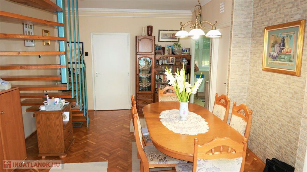 Nyíregyháza, Ságvári kertváros központi részén, de csendes környezetben, tégla építésű (hőszigetelt), 3 szoba + nappalis, 130 nm-es, dupla komfortos, egyedi gázfűtéses, nagy teraszos, szép állapotú sorházi lakás, garázzsal eladó. További jellemzők: világos-, tágas belső terek, a nappaliból teraszkapcsolat, új beépített/gépesített konyhabútor, felújított fürdőszoba, műanyag nyílászárók (az ablakokon redőnnyel és rovarhálóval), járólap és parketta padlóburkolatok, klímaberendezés. A földszinten előtér, nagy nappali, konyha, spájz, zuhanyzó WC-vel; az emeleten előtér, 2 szoba, fürdőszoba, külön helyiségben WC; a tetőtérben egy nagy szoba található. A tető is felújított, a garázs 21 nm-es. Az udvar (mely közös, osztatlan tulajdonú) tágas, részben térkövezett és parkosított. Vevőink számára az ingatlanközvetítés díjtalan, a vásárlással kapcsolatos mindenfajta ügyintézésben segítséget nyújtunk! Hivatkozási szám: 61567Az ingatlan azonosítója: 61567Érdeklődni: +36707893944 Az ingatlan azonosítója: 61567 Érdeklődni: +36707893944