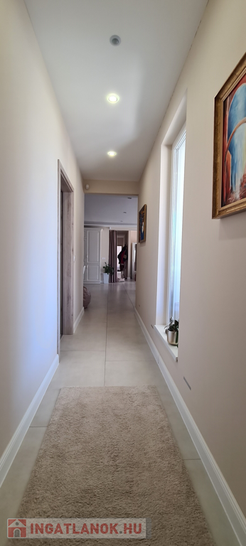 Az ingatlant magas minőségű anyagok felhasználásával, saját részre építették a tulajdonosok, Porotherm tégla falazatú 10 cm külső szigeteléssel, gáz cirkó padlófűtéses, egyedi gyártású konyhaszekrénnyel, energiatakarékos gépesítéssel, hűtő-fűtő klímával, riasztóval, kamerarendszerrel, kamerás kaputelefonnal, házat körülvevő lézersorompóval, udvaron mozgásérzékelős kültéri lámpákkal felszerelt.A ház 3 szoba, nappali-konyha-étkező teraszkapcsolattal, 2 fürdőszoba, háztartási helyiség, garázs elrendezésű. Az udvaron kerti sütögetésre alkalmas szalonnasütő, kemence, könnyűszerkezetes tároló is helyet kapott.