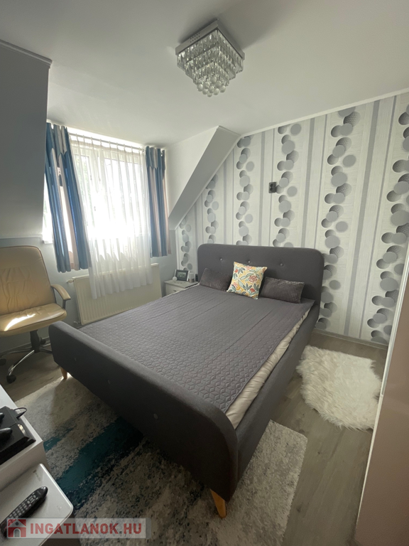 Az alsó szinten: nappali-konyha-étkező, zuhanyzós fürdőszoba,Felső szinten: 3 külön nyíló szoba, közlekedő, fürdőszoba található.