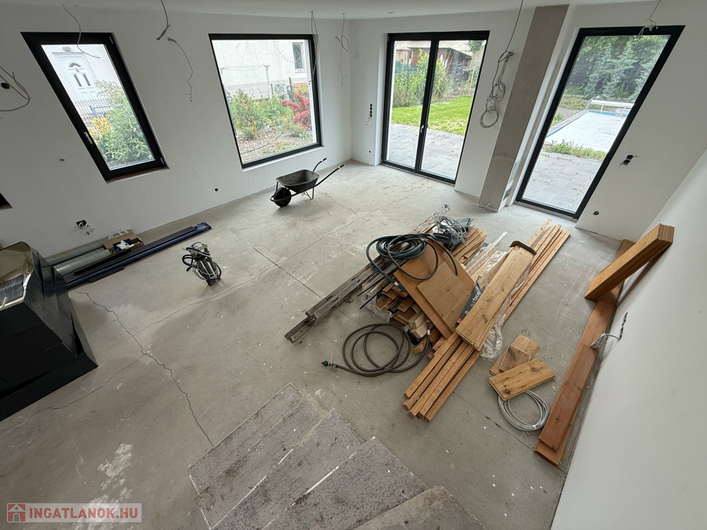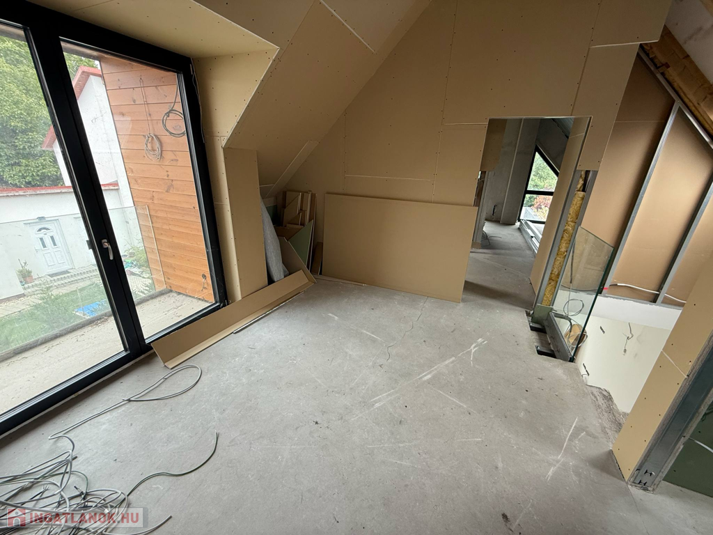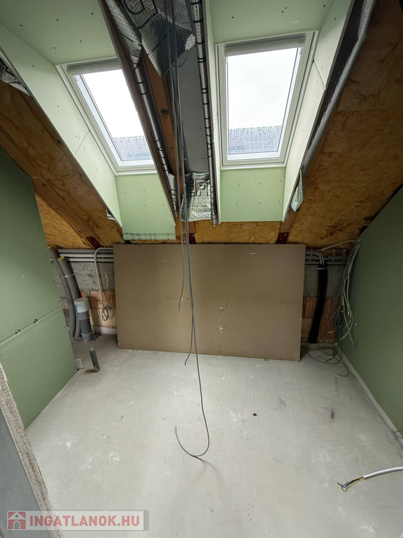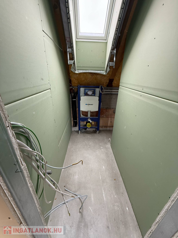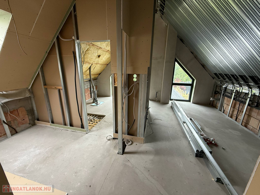 Velencén, az Ófaluban eladó egy 180 m2-es, kétszintes családi ház. A ház a képeken is látható állapotában, befejezésre várva eladó, így az új tulajdonosa, teljesen a saját ízlésére formálhatja az ingatlan belső dizájnját. A földszinten egy amerikai konyhás nappali étkezővel, egy hálószoba, gardrób, mosókonyha, WC, tároló és egy garázs került kialakításra. A nappalihoz egy terasz is kapcsolódik. Az emeleten 3 hálószoba, egy gardrób, 2 fürdőszoba, 2 erkély és egy közösségi tér található. Az otthon melegét hőszivattyús rendszer biztosítja padlófűtéses hőleadással a maximális komfortérzet érdekében. Mennyezeti hűtés és szellőztetés professzionális légtechnikával kivitelezett.