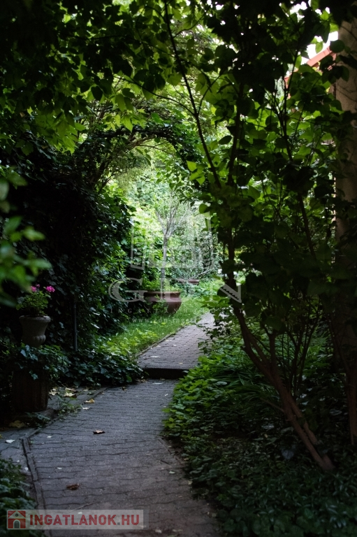 A ház legnagyobb értékes dísze a kert, őspark, mini arborétum. Egy beállt kert, különleges növények, fák, virágok sokasága, pergola, fedett terasz, gyermek játszó-faház, kerti ösvények teszik romantikus hangulatúvá, ahol több helyen van lehetőség pihenésre, főzésre, szabadtéri tevékenységekre. A levegő oxigén-dús, és a nyári melegben néhány fokkal alacsonyabb a hőmérséklet a telken, klímára nincs is szükség.