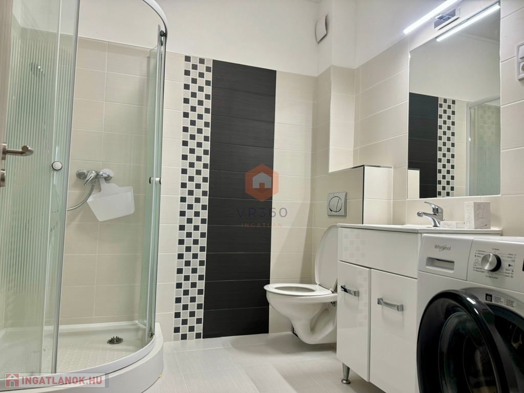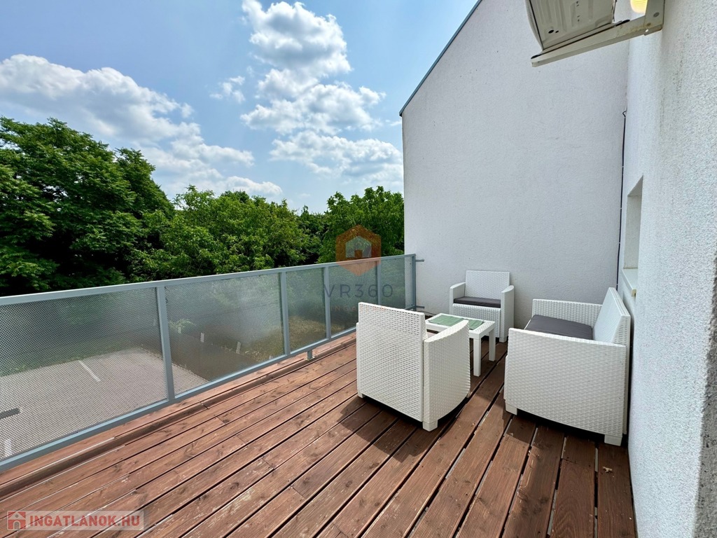 A lakás nyugati fekvésű, világos, teljesen bútorozott és gépesített, valamint klímával felszerelt. A tágas nappalihoz egy 13 m²-es, kényelmes terasz is tartozik, amely ideális kikapcsolódásra vagy tanulásra. A fürdőszoba és a WC külön helyiségben található.