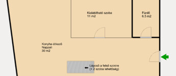 A teljes alapterülete 90 m2, a felső, tetőtéri helyiség miatt a netto alapterület összesen 62 m2.