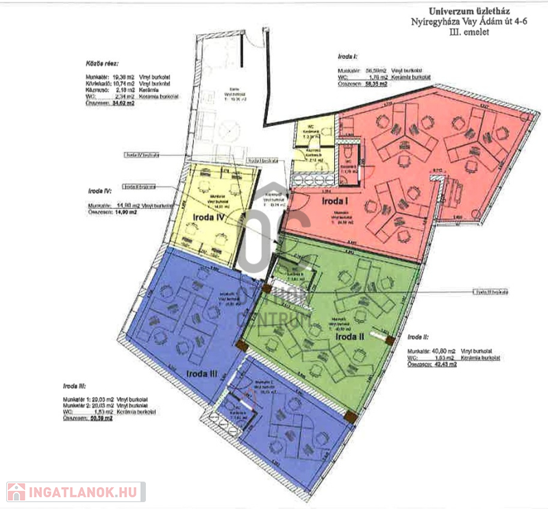 Munkatér mérete: 40,1m² – tágas, világos, jól bútorozható